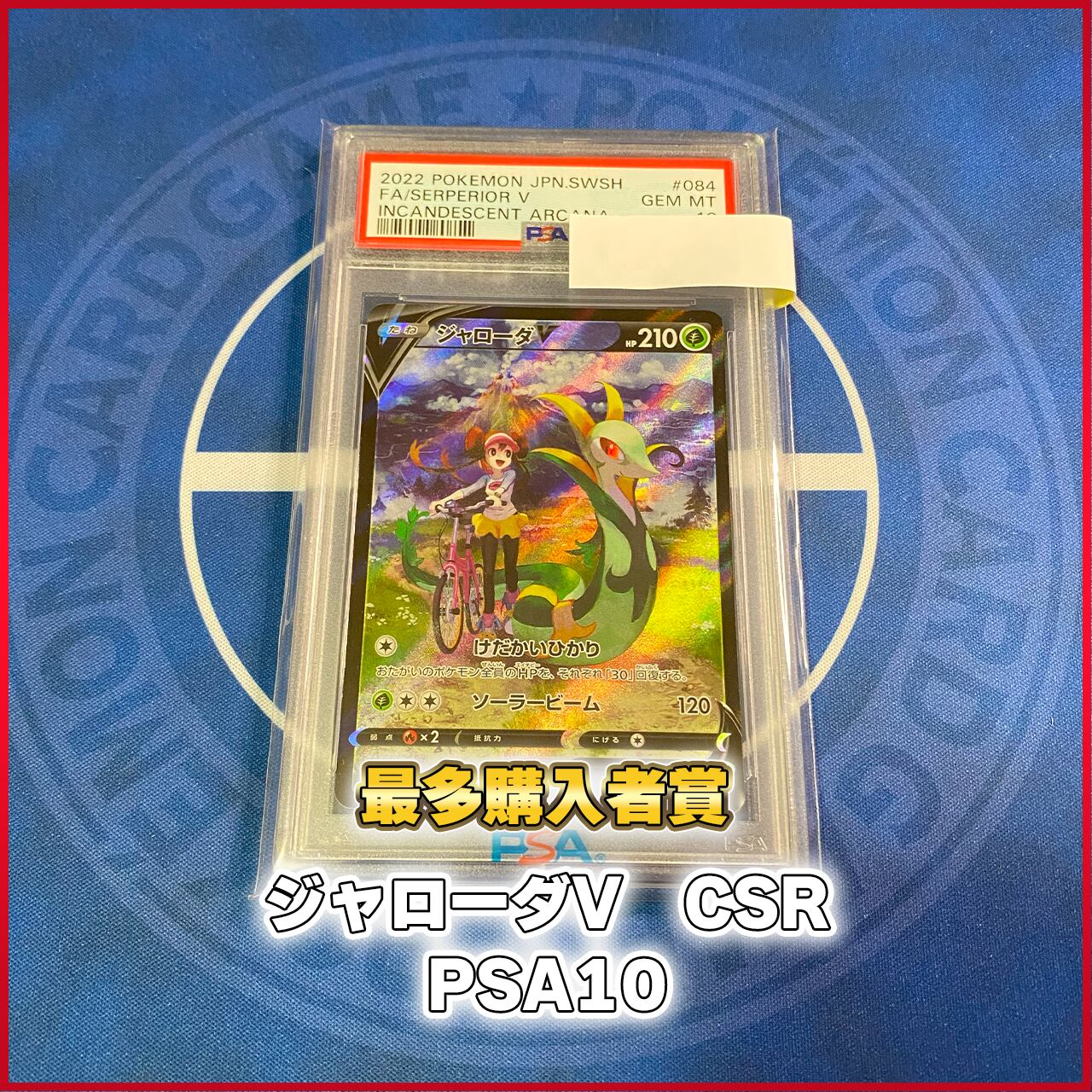 いつもたくさん購入していただいてる方へ何か特典をという思いから、最多購入者賞としまして、なんと目玉級のジャローダV CSRのPSA10をプレゼントいたします!